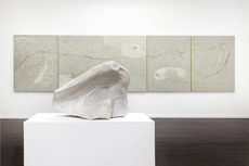The works build a body of transformed surfaces, all intensely process-based and containing progressive sedimentations of material that span physical time, ranging from the geological, ancient, and into the contemporary and industrial. Natural stone, oil pigments, concrete, steel - each speaks to the other on molecular and philosophical levels.